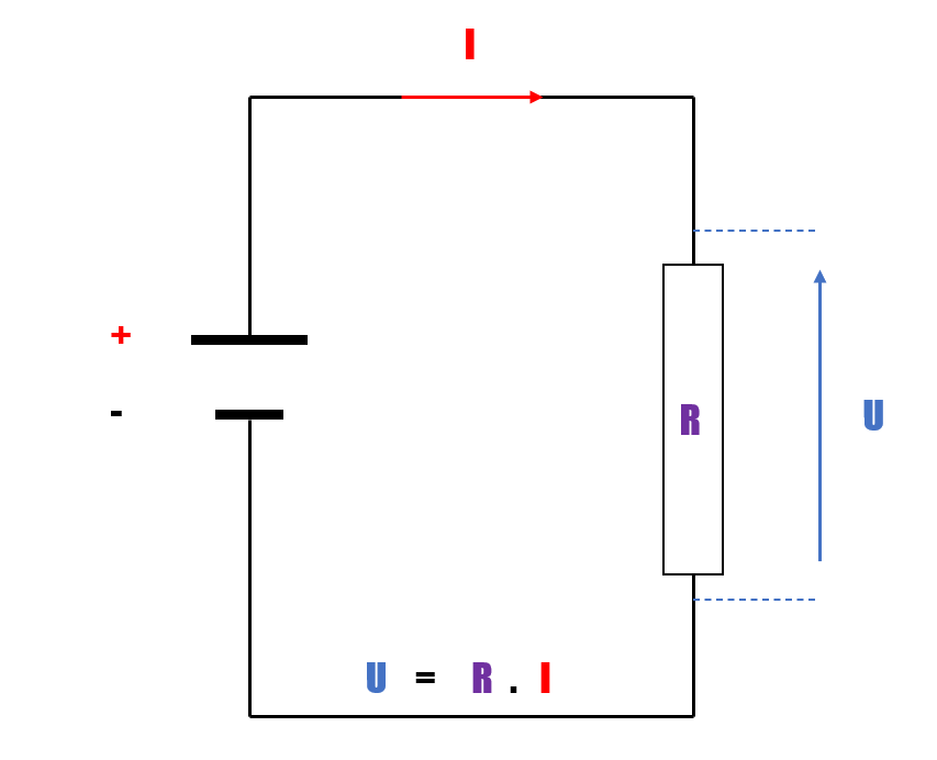U = R × Ila tensionSi R = 10 Ω et I = 2 A, alors U = 20 V