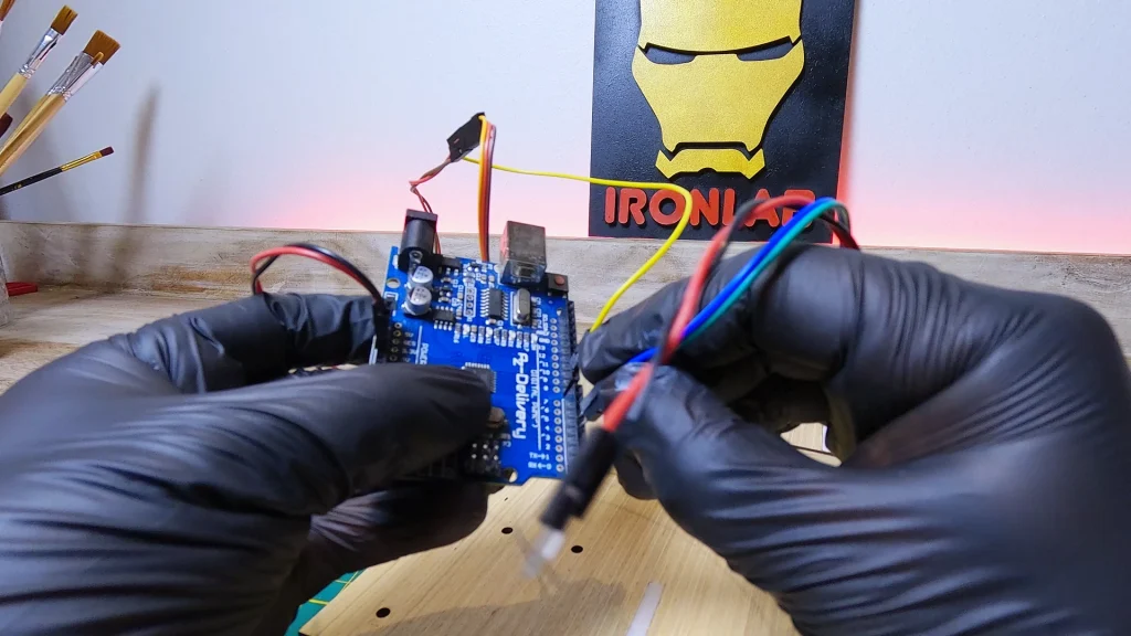 Upload le code, ajoute l’alimentation 5V et test ta création !